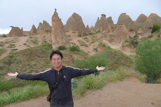 Unique Cappadocia geography feature: Fairy Chimneys. If you are interested in their formation, you may refer to here: https://en.wikipedia.org/wiki/Hoodoo_(geology)